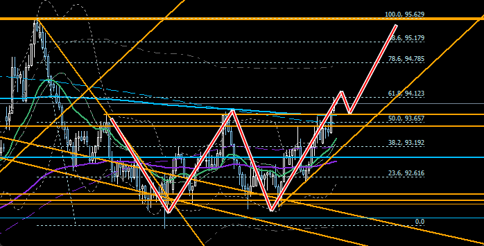 押しを付けてからの上昇になっていくか、このままダラダラ登っていくかはわかりませんが、上目線での目標はとりあえず直近最高値(画像内フィボ100%がダブルボトムのエネルギー分にっている)付近まで、もしくはフィボ78.6までで見ておくといいでしょう。